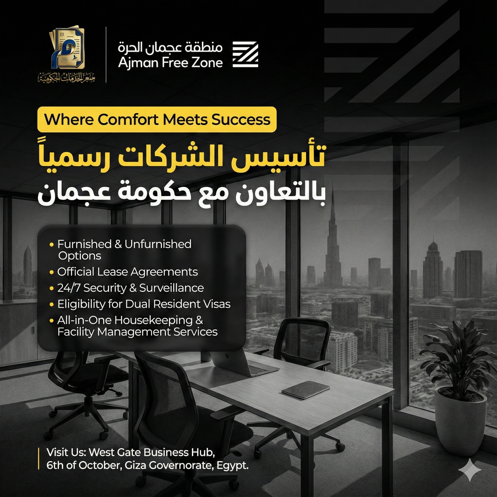 ​تواصل معنا الآن، واحصل على مكتبك التنفيذي، وابدأ رحلة نجاحك رسمياً من عجمان إلى العالم.