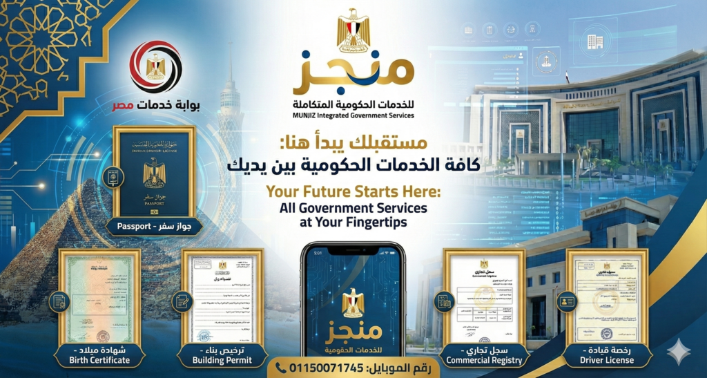خدمات “منجز”، مصمم ليكون دليلك الكامل لإنجاز المعاملات الحكومية في مصر بأسلوب ذكي ومقنع.